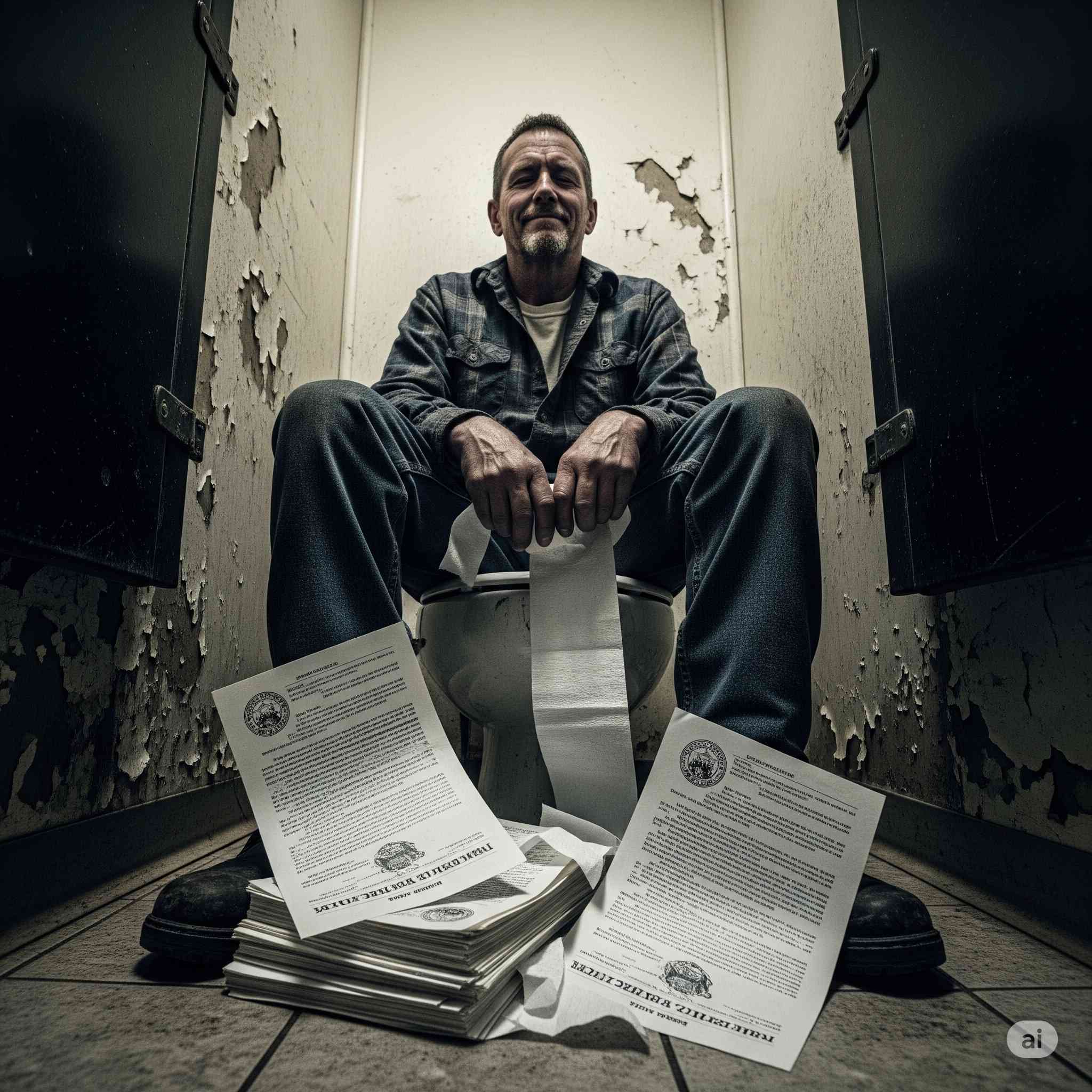 Picture this: You’re in the stall next to some trucker named Big Mike, unfolding official court documents with the crisp authority of someone conducting important business. The sound of premium paper stock echoing off grimy bathroom tiles. Big Mike probably thinks you’re reviewing contracts or something equally impressive.