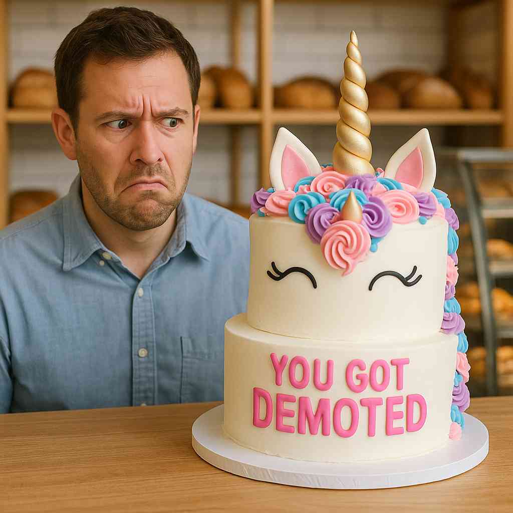 Oh, he KNOWS. He knows that cake wasn’t sincere. He knows those LinkedIn endorsements for “Breathing Exercises” aren’t real professional development. He knows the support group is just you and six other people who’ve suffered through his PowerPoints taking victory laps.
