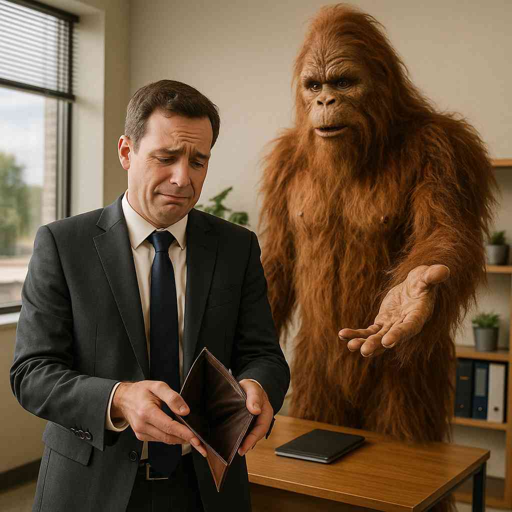 “Bigfoot needed a loan.” He’s eight feet tall and knows where you live. You don’t say no to Bigfoot. That’s just survival instinct.