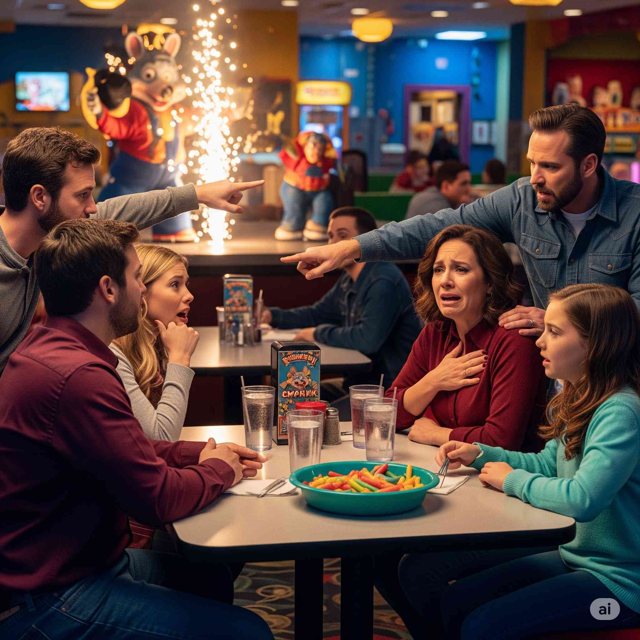 Plus—and this is key—nobody can storm out dramatically while still chewing. You ever try to slam a door with a mouth full of Chuck E. Cheese pizza? Physically impossible. The cheese creates some kind of gravitational pull that keeps you tethered to your seat like emotional flypaper.