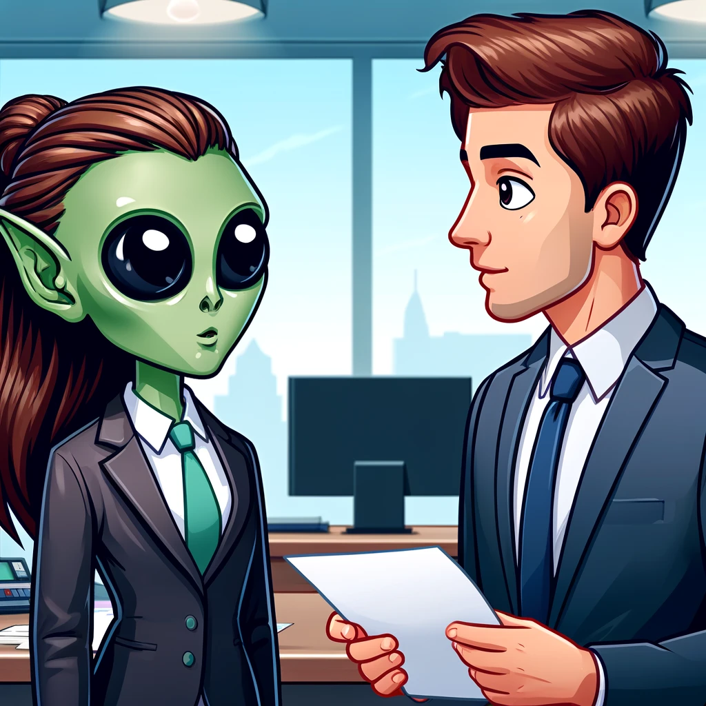 So go forth, my extraterrestrial friends, and show your boss and colleagues what you’re really made of (besides carbon, hydrogen, and a dash of stardust). The universe is your oyster, and the office is your intergalactic playground. Have fun, and may the force be with you!