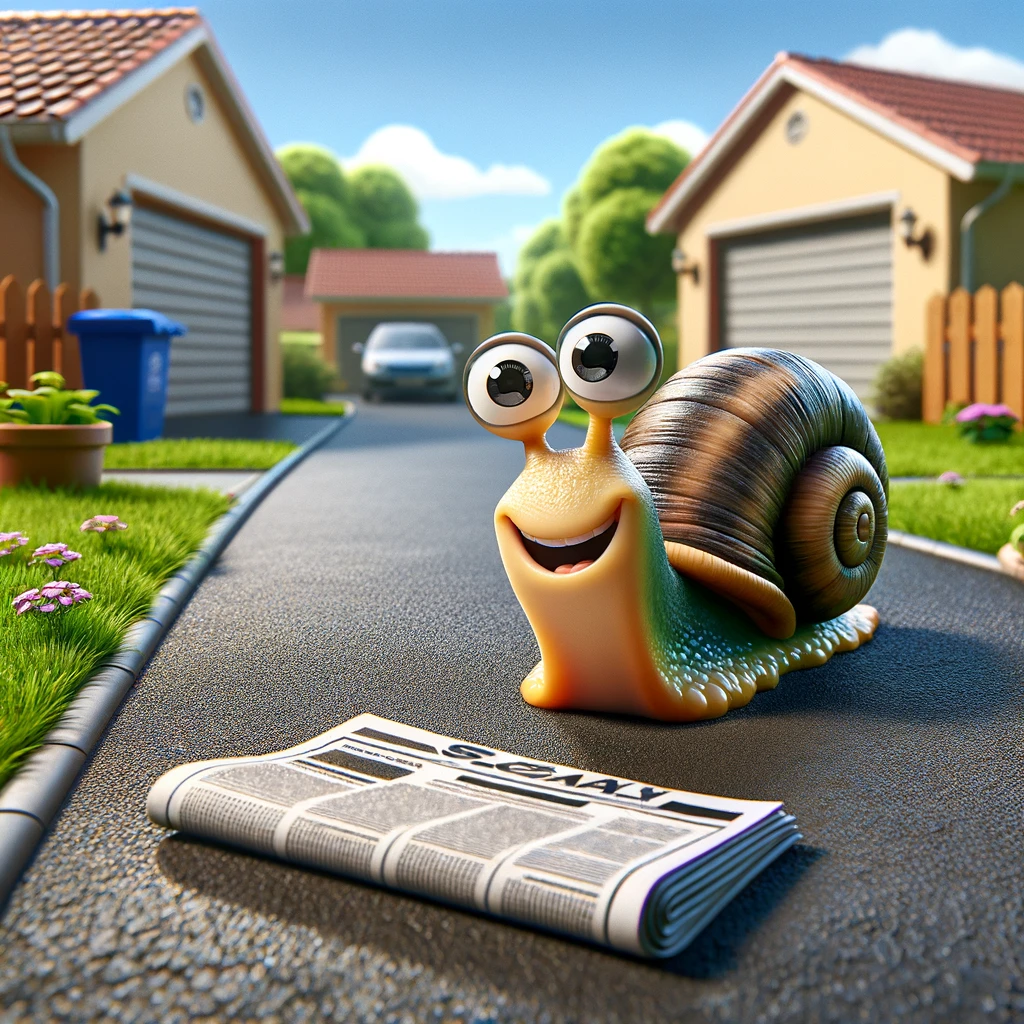 Once your snail has mastered the mini course, it’s time to take things to the next level. Slowly transition to the actual driveway and newspaper, but be prepared for a few setbacks along the way:
