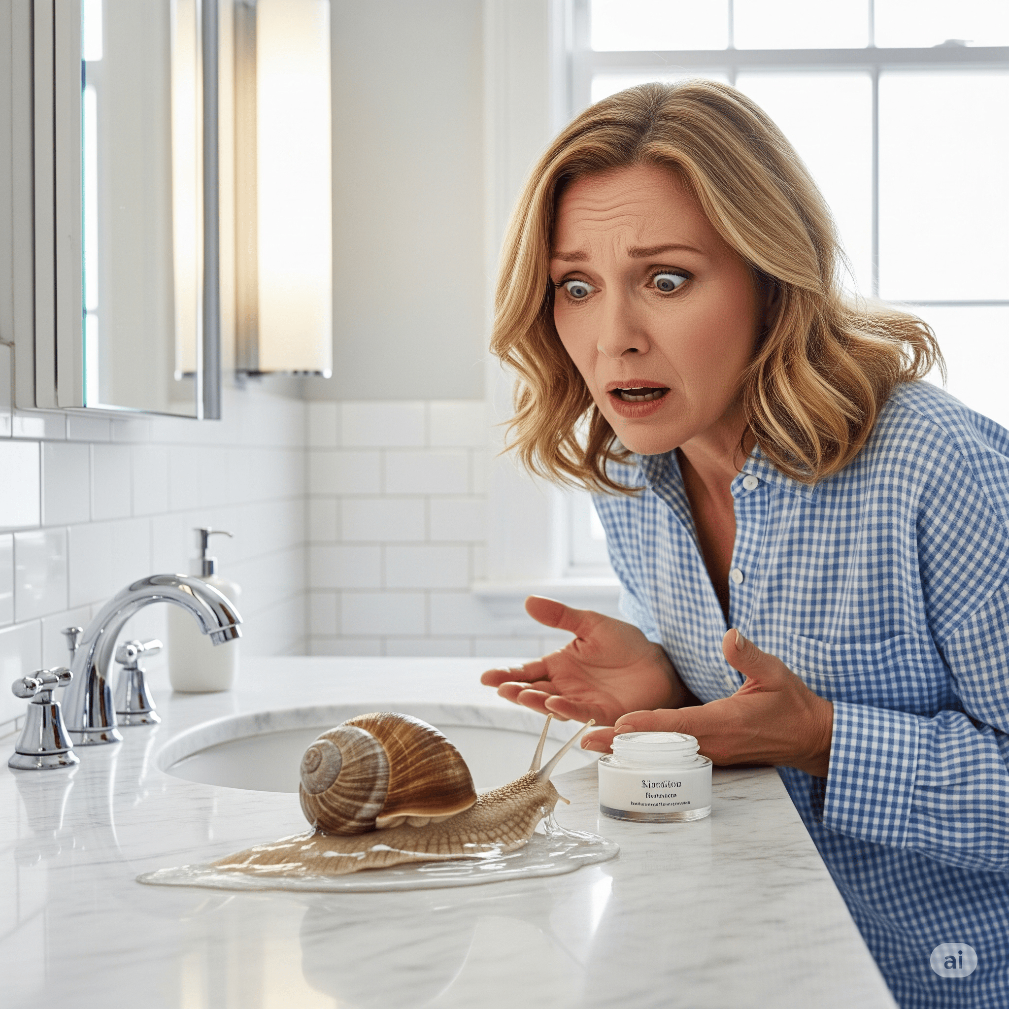 “You’ve colonized my bathroom with skincare products Serums and toners like you’re planning a siege Found something called ‘snail mucin’ last week Googled it. Wished I hadn’t. Used it anyway.”