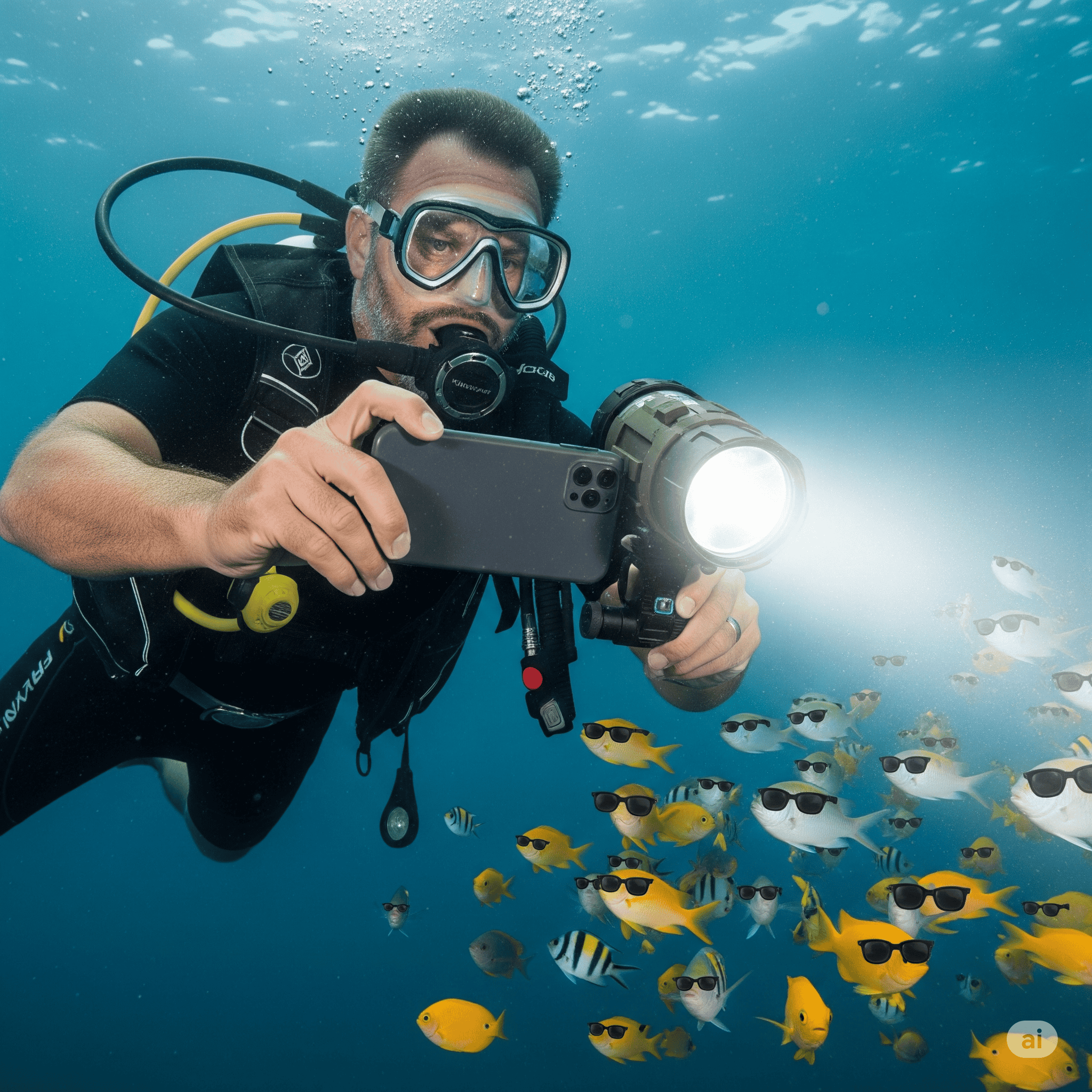 Real underwater photographers? The ones whose work made you think this was possible? They’re using $75,000 setups and have been doing this since before you were born. They understand things like “strobe positioning” and “color temperature” and “why phones don’t belong underwater.”