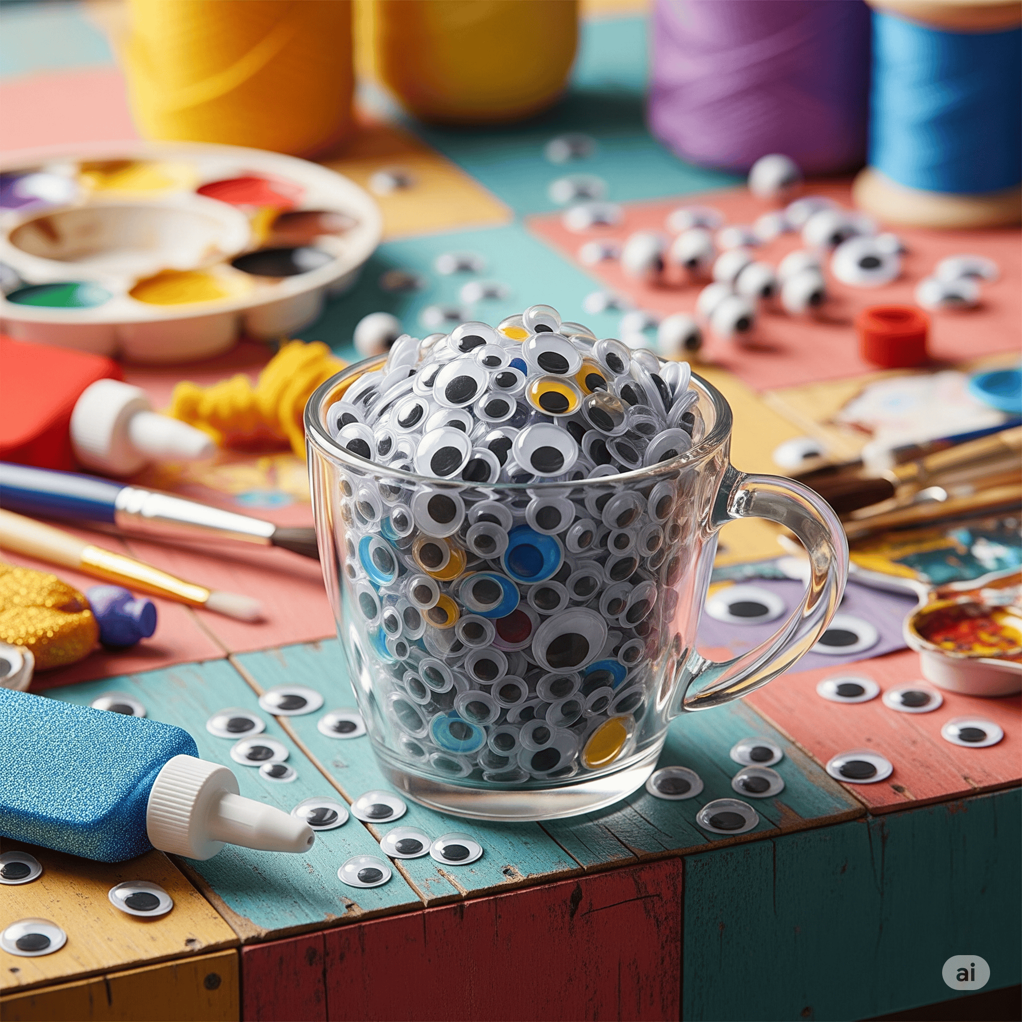 The thing about googly eyes in clear mugs? They stare at you. All of them. Hundreds of tiny plastic eyes judging your life choices. It’s unsettling. It’s perfect.