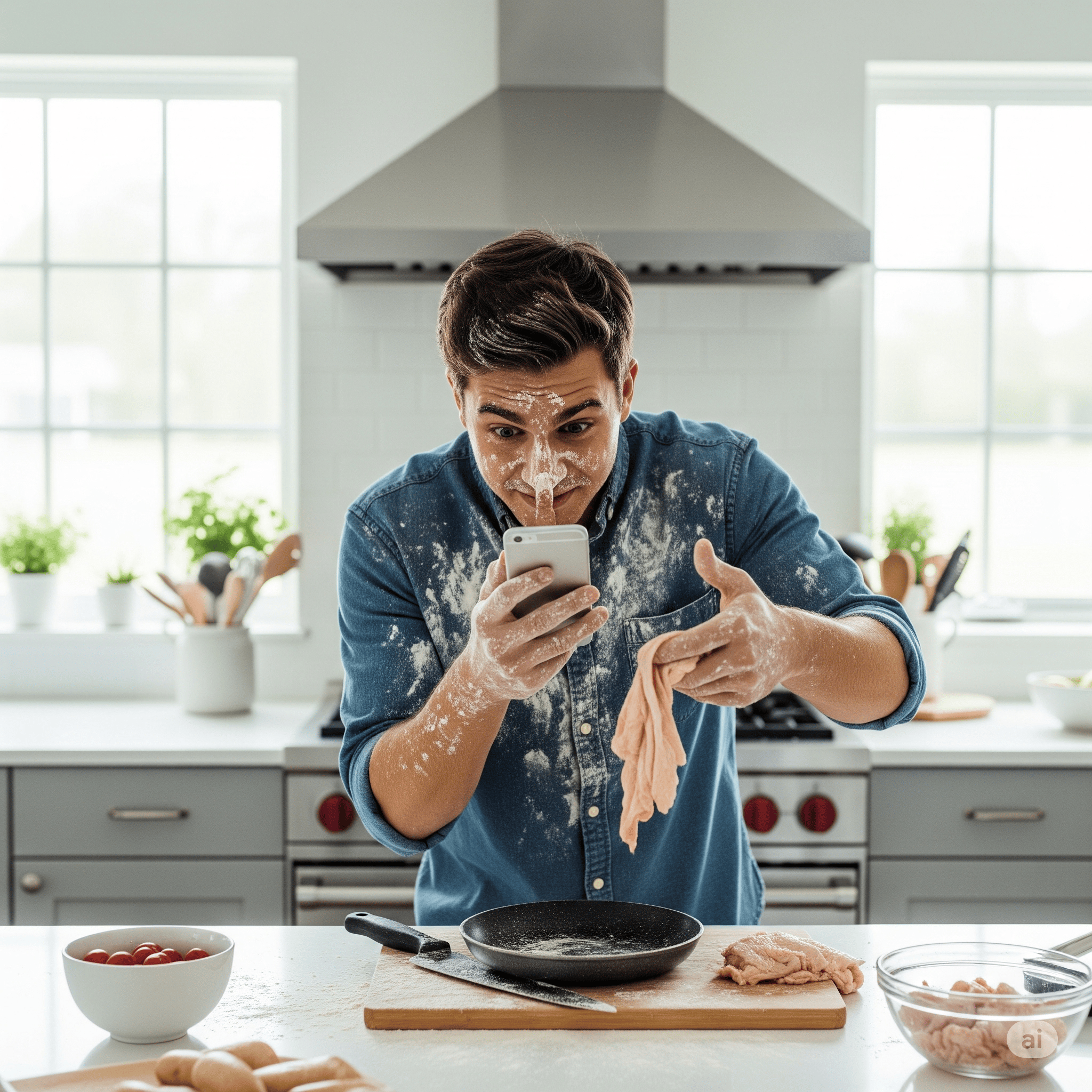 Grab phone → Face ID fails because flour on face → Passcode with sticky finger → Wrong passcode → Wipe finger → Try again → Find notes app among 847 others → App needs update → Accept terms longer than Constitution → Forget what you wanted to write → Type “milk” → Feel like you’ve accomplished something → You haven’t