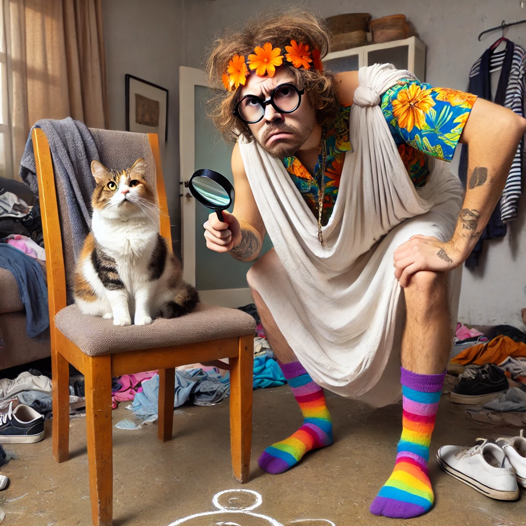 It’s time to gather intel. Your cat, Mr. Whiskers, was the only other witness to last night’s events. Sure, he’s notoriously tight-lipped and a little judgmental, but his piercing stare holds answers. Stare back and demand to know what he saw. His response will be silence, as usual.