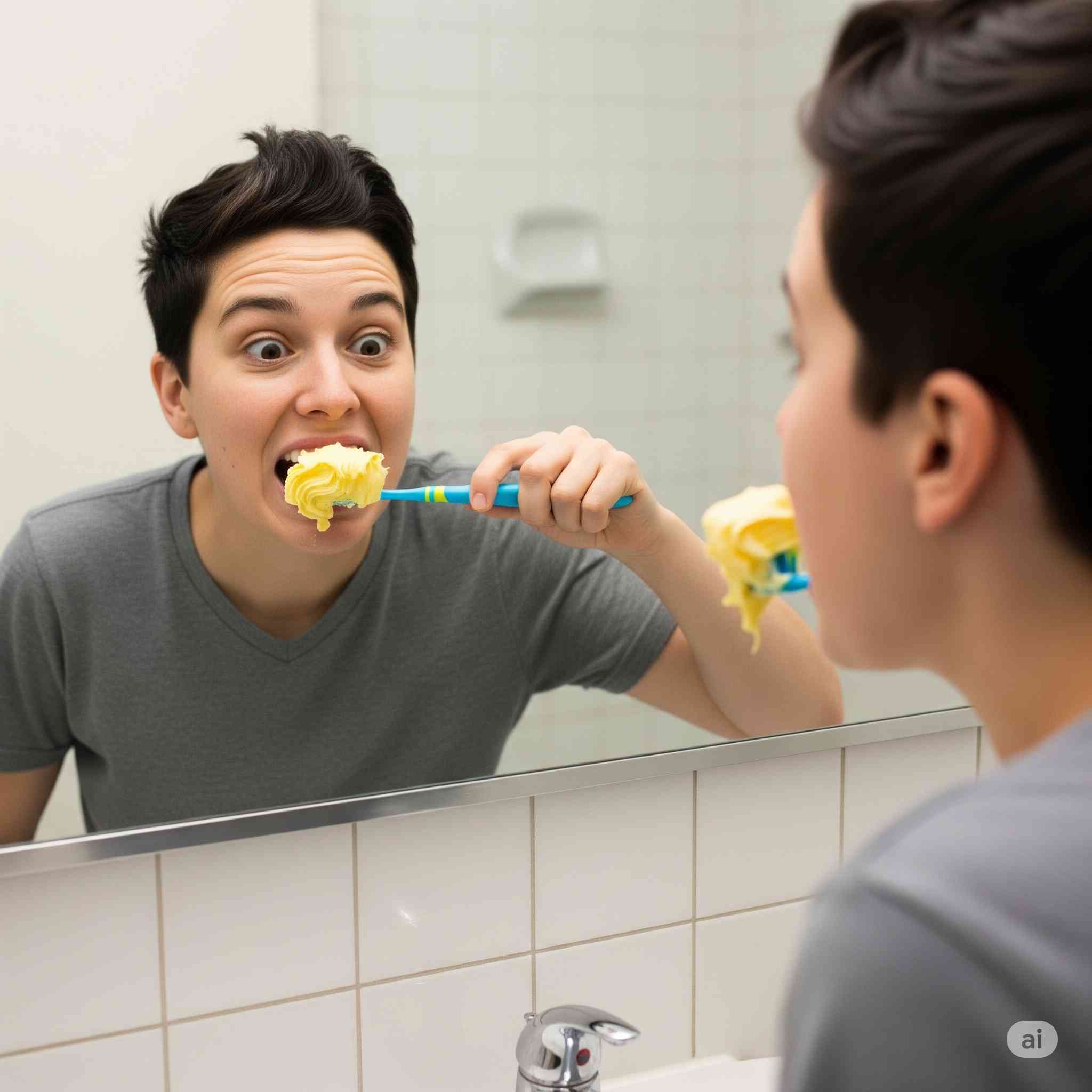 This isn’t some delicate operation. Load that brush like you’re trying to butter the world’s angriest piece of toast. We’re talking a full tablespoon minimum. Your toothbrush should look like it’s about to star in a Paula Deen fever dream.