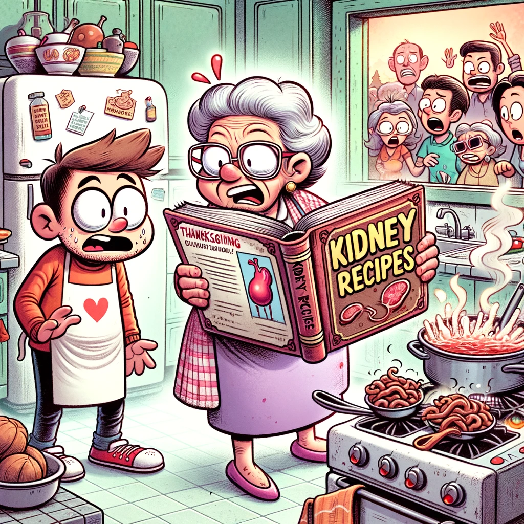 - Family drama: Eating Grandma’s kidney is sure to cause a rift in the family dynamic. Thanksgiving dinner just got a whole lot more awkward.